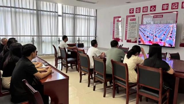 观看过程中,全体党员干部全神贯注,心情随着阅兵式的推进而激动不已。当铿锵有力的步伐声响起,当现代化武器装备依次亮相,当空中梯队呼啸而过,党员们发出阵阵赞叹,大家深刻感受到了人民军队“听党指挥、能打胜仗、作风优良”的磅礴气势,以及我国国防科技的强大实力。